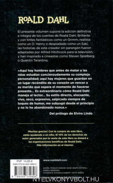 «Aquí hay hombres que antes de matar a las ratas estudian concienzudamente su compleja personalidad; aquí hay mujeres que guardan en un lugar recóndito de su corazón un rencor a su marido que espera el momento de hacerse presente... Es extraordinario cómo Roald Dahl maneja al lector... Su estilo directo, elocuente, vivo, seco, expresivo, salpicado siempre de toques de humor, me subyugó desde el principio y no lo he abandonado nunca.»Elvira Lindo