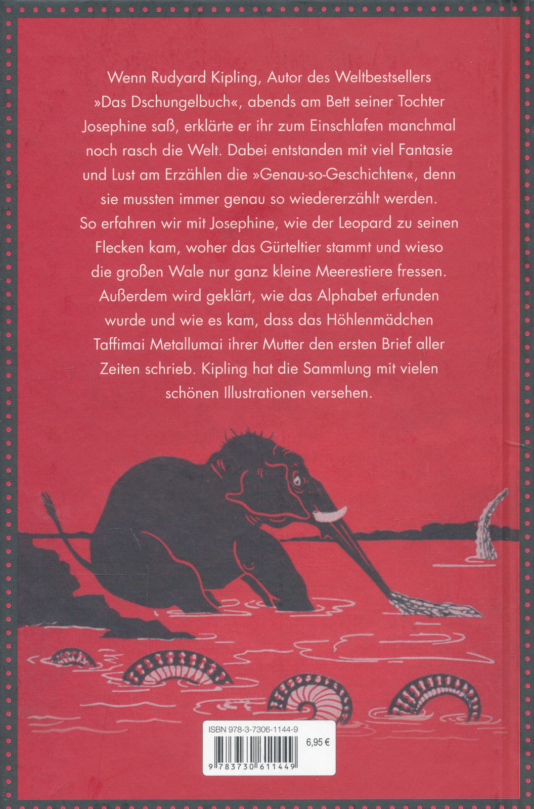 Dabei entstanden mit viel Fantasie und Lust am Erzählen die »Genau-so-Geschichten«, denn sie mussten immer genau so wiedererzählt werden. So erfahren wir mit Josephine, wie der Leopard zu seinen Flecken kam, woher das Gürteltier stammt und wieso die großen Wale nur ganz kleine Meerestiere fressen. Außerdem wird geklärt, wie das Alphabet erfunden wurde und wie es kam, dass das Höhlenmädchen Taffimai Metallumai ihrer Mutter den ersten Brief aller Zeiten schrieb. Kipling hat die Sammlung mit vielen schönen Illustrationen versehen.
