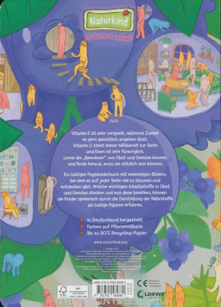 Dieses wimmelige Pappbilderbuch widmet sich der Frage, welche wichtigen Nährstoffe in unserem Obst und Gemüse enthalten sind und was diese in unserem Körper bewirken.
