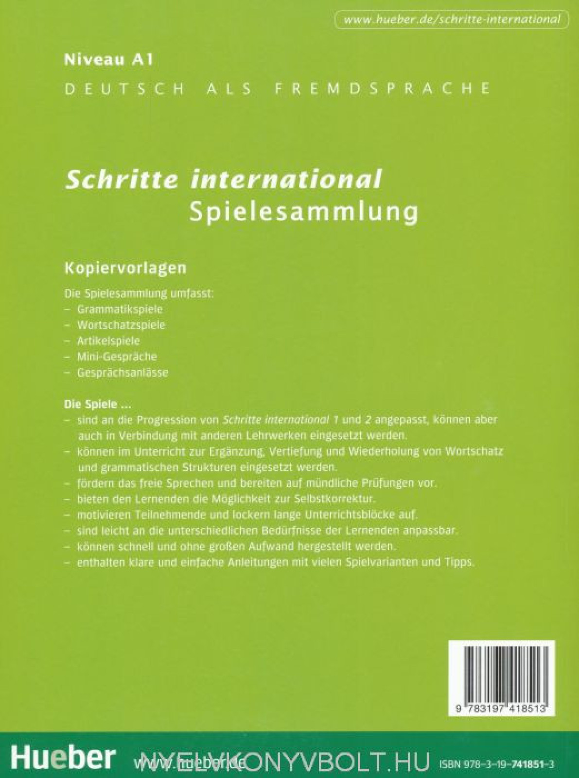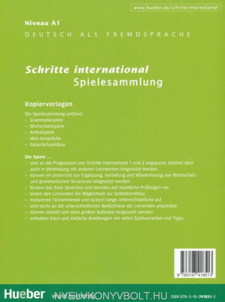 Die Spielesammlungen sind geeignet sowohl für lernungewohnte als auch geübte Kursteilnehmer und enthalten Grammatikspiele, Wortschatzspiele, Artikelspiele, Minidialoge für stark gesteuertes Sprechen und Gesprächsanlässe für freies Sprechen.