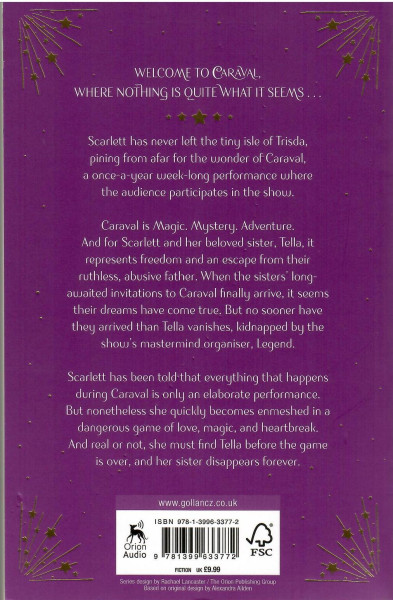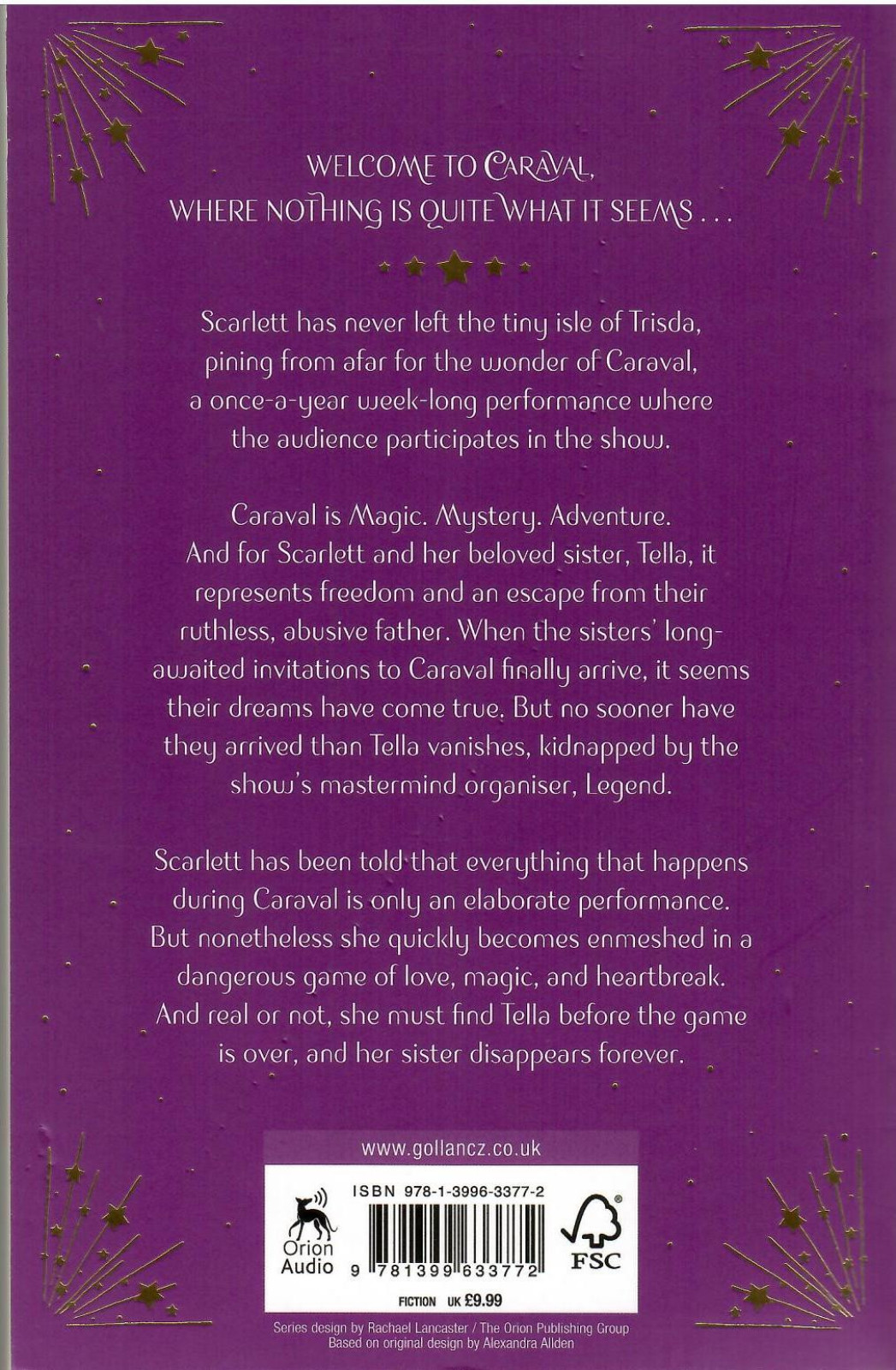 Caraval is Magic. Mystery. Adventure. And for Scarlett and her beloved sister, Tella, it represents freedom and an escape from their ruthless, abusive father. When the sisters' long-awaited invitations to Caraval finally arrive, it seems their dreams have come true. But no sooner have they arrived than Tella vanishes, kidnapped by the show's mastermind organiser, Legend.Scarlett has been told that everything that happens during Caraval is only an elaborate performance. But nonetheless she quickly becomes enmeshed in a dangerous game of love, magic, and heartbreak. And real or not, she must find Tella before the game is over, and her sister disappears forever.