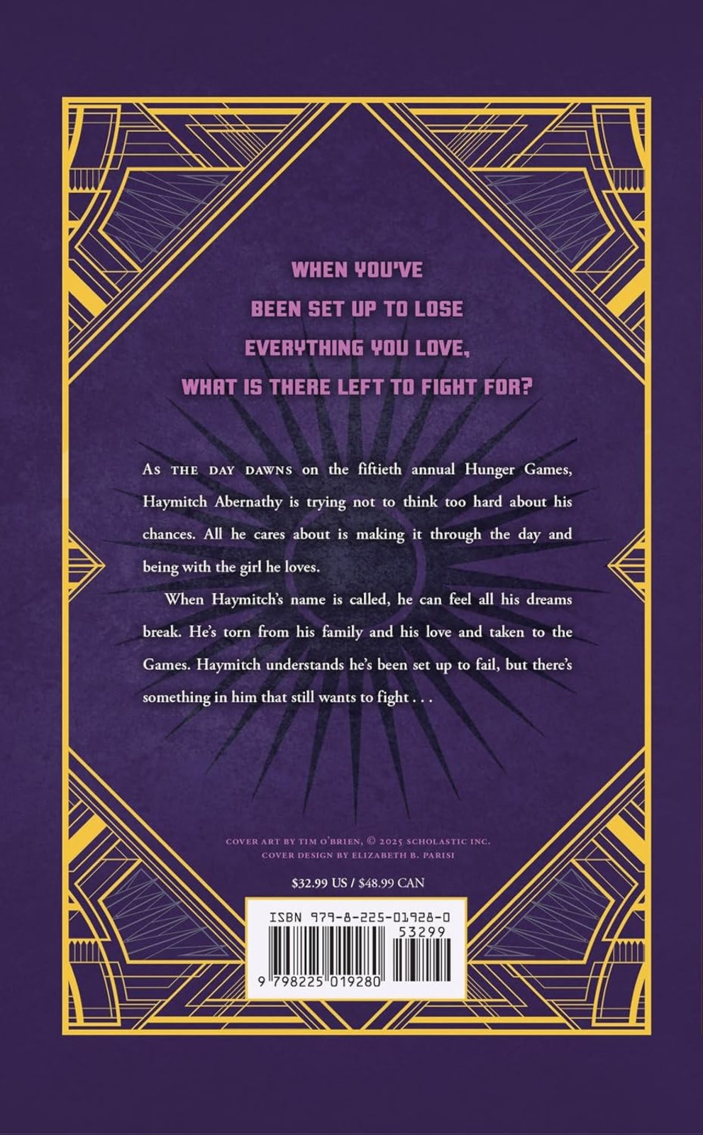 This year, in honour of the Quarter Quell, twice as many tributes will be taken from their homes. Back in District 12, Haymitch Abernathy is trying not to think too hard about his chances. All he cares about is making it through the day and being with the girl he loves. When Haymitch's name is called, he can feel all his dreams break. He's torn from his family and his love, shuttled to the Capitol with the three other District 12 tributes: a young friend who's nearly a sister to him, a compulsive oddsmaker, and the most stuck-up girl in town. As the Games begin, Haymitch understands he's been set up to fail.