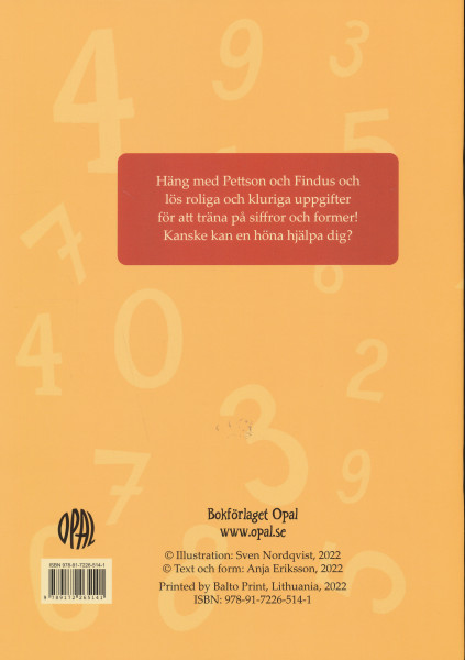 En kul och lagom klurig pysselbok för alla som älskar Pettson och Findus! Med siffror och former i fokus och Findus vid rodret är detta en perfekt bok innan man börjat skolan.