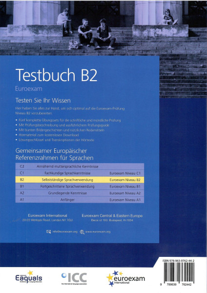 A kiadványban szereplő mintafeladatok mindegyike az eredeti vizsgafeladatokkal megegyező formátumú. Az egyes feladatokhoz kapcsolódó elvárások, magyarázatok, mintamegoldások, nyelvi javaslatok pedig ötleteket és támpontokat adnak ahhoz, hogy mire érdemes odafigyelni az egyes vizsgarészeken.A második kiadás feladatait nem cseréltük le, oldalszámozását nem változtattuk, kizárólag nyelvi pontosításokat végeztünk. Az írás- és beszédkészséghez tartozó értékelési szempontrendszer a honlapon érhető el (Vizsgainfó, MyEuroexam fiók). A színes képtörténetek az első kiadás fekete-fehér történeteivel megegyeznek.
