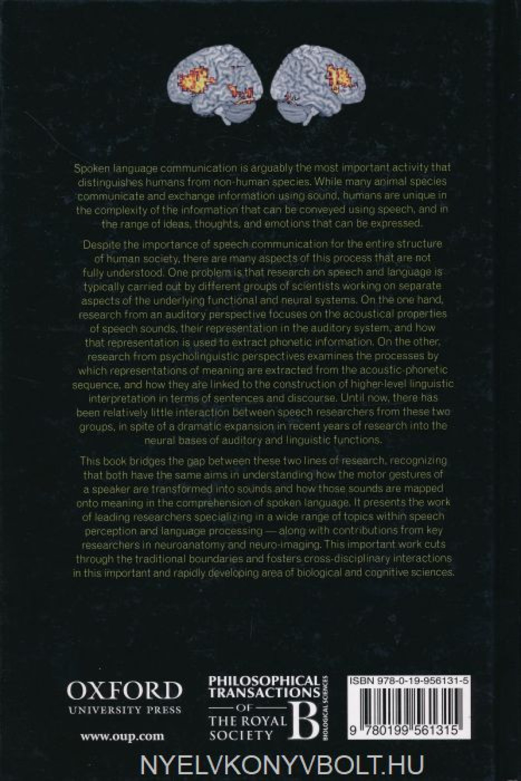 This book presents the work of leading researchers specializing in a wide range of topics within speech perception and language processing - along with contributions from key researchers in neuroanatomy and neuro-imaging.