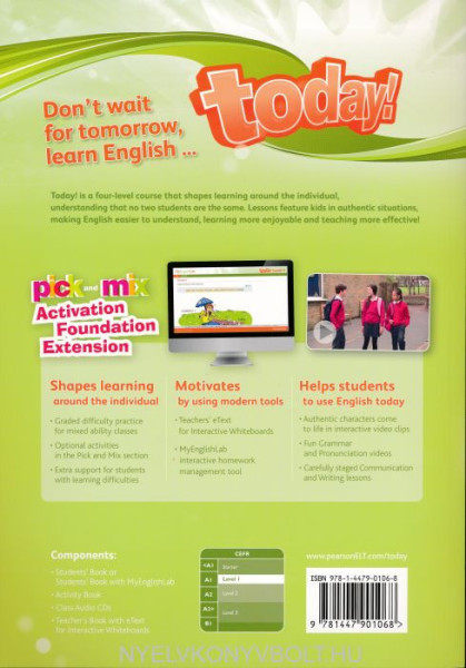 Today! is a four-level course that shapes learning around the individual, understanding that no two students are the same. Lessons feature kids in authentic situations, making English easier to understand, learning more enjoyable and teaching more effect