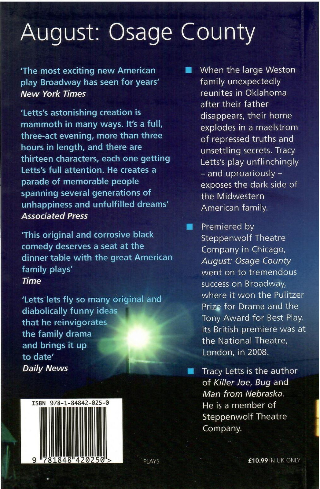 When the large Weston family is reunited in Oklahoma after the disappearance of their father, they let loose a maelstrom of repressed truths and unsettling secrets.First staged in the UK at the National Theatre in 2008 following its premiere in Chicago, August: Osage County won the Pulitzer Prize for Drama, Tony Award for Best Play and Critics' Circle Award for Best Play. August: Osage County was filmed in starring Meryl Streep, Julia Roberts, Ewan McGreger and Benedict Cumberbatch.