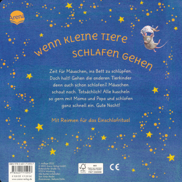Das Pappbilderbuch ab 2 Jahren lädt zum Träumen ein. Eine zauberhafte kleine Gutenacht-Geschichte in Reimen, erzählt von Katja Reider und traumhaft schön illustriert von Stefanie Dahle, prachtvoll ausgestattet mit Stanzung und Glanzfolie sorgt für ein Abendritual voller Freude und Entspannung.Zeit zum Schlafengehen! Für Mäuschen und die anderen Tierkinder. Doch schlafen wirklich alle schon? Mäuschen schaut nach. Tatsächlich, alle schlafen. Da schläft Mäuschen auch.